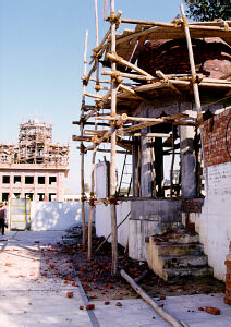 After agreeing to leave Chamkaur as commanded by his Sikhs, Guru Gobind Singh escaped into the night and the jungle surrounded by the enemy troops. In the dark the Guru was separated from his three Sikh and left alone in the dense jungle. Guru Gobind Singh trudged through the jungle day and night, his clothes tattered and his feet blistered. Eventually the Guru reached the outskirts of Machiwara town and lay down to sleep in a garden in some bushes on the ground with a stone as his pillow. Here he was found by the three remaining Sikhs Dharam Singh, Daya Singh and Man Singh. This gurdwara marks that spot where Guru Gobind Singh was found sleeping. Guru Gobind Singh drank water from the well that appears in the foreground.