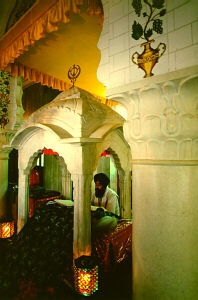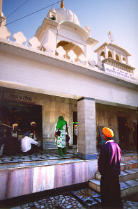 Living in the town of Machhiwara were two Muslim Pathan brothers Ghani Khan and Nabi Khan who knew Guru Gobind Singh. It better times they had sold horses and received kindness from the Guru. Even at the prospect of facing certain death, the brothers agreed to help Guru Gobind Singh escape the surrounding area which was full of the Mughal army looking for the Guru. They had Guru Gobind Singh put on the blue robes of a Muslim saint and accompanied by his three Sikhs survivors of the battle of Chamkaur, they carried the Guru in a palanquin through the enemy lines. They were only stopped once by Muslim soldiers, but Ghani Khan and Nabi Khan were so convincing that the party was allowed to pass through enemy lines with their 'Muslim Saint' in disguise. This gurdwara honors the home of these two brave brothers.