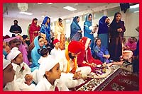 ![]() The sounds of kirtan are heard as people enter and pay their respects before Sri Guru Granth Sahib. |